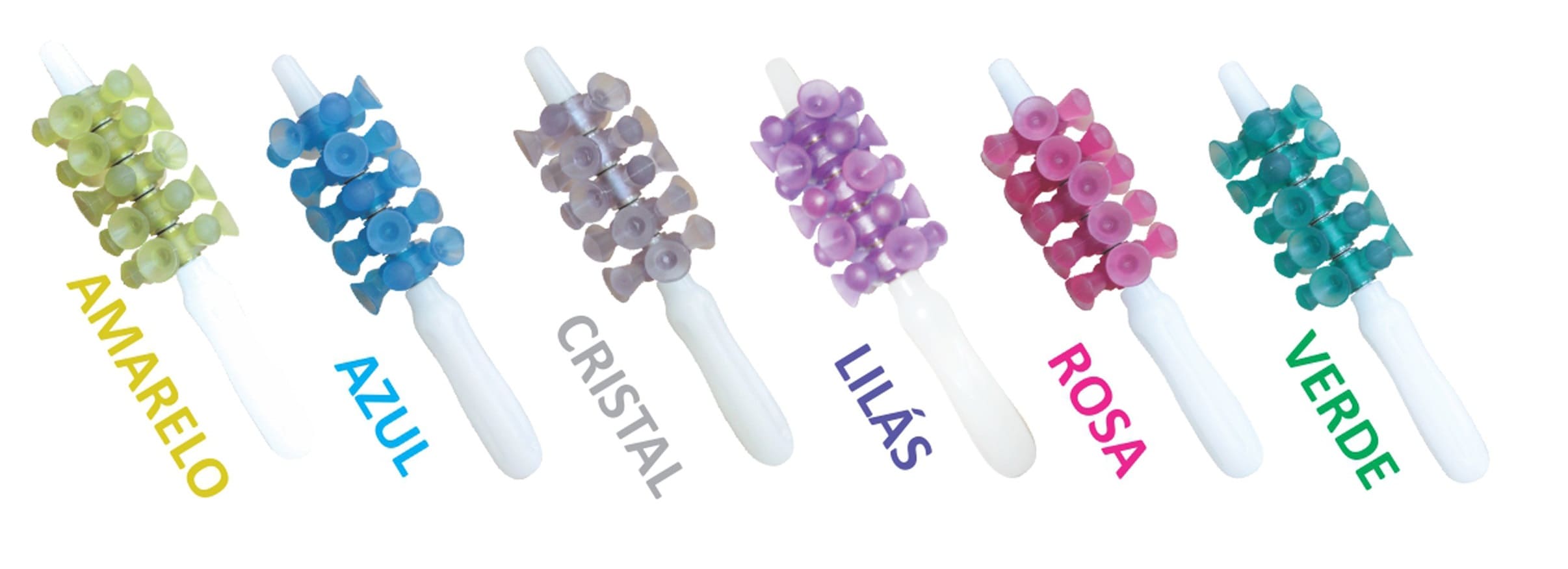 Disponíveis nas cores amarelo, azul, cristal, lilás, rosa e verde, os rolos de massagem Roloplastic unem funcionalidade, estética e padrão profissional, sendo ideais para clínicas de estética, fisioterapia, spas e centros de bem-estar.